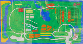 Linksboven: De ingang van de begraafplaats Middenboven: Beeld van de begraafplaats met het columbarium op de achtergrond Rechtsboven: Urnengraven Linksonder: Speciale plek voor kindergraven Rechtsonder: Plattegrond van de begraafplaats. |
